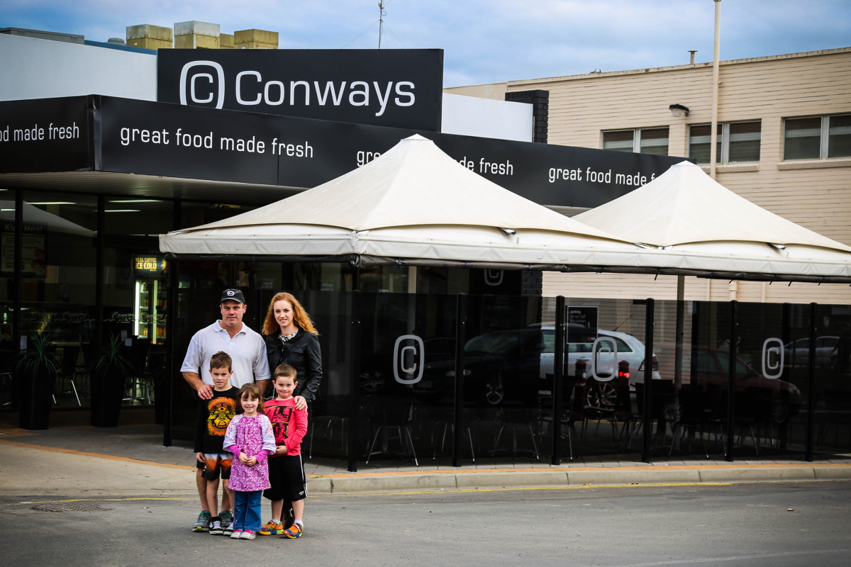 In 2006, Harry and Helen handed over the reins to their son Michael and his wife Laura, who continue the family tradition of providing locals and visitors with great food made fresh. With more than 20 years’ experience in the family business, Michael firmly believes that great food and fantastic service are fundamental to the success of his business. While the traditional Conways pies remain their speciality, Michael and Laura have developed a business that is much more than just a great pie shop. Conways is a coffee shop, bakery, cafe and catering service!